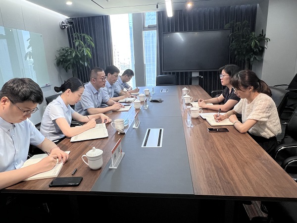 8月11日上午,浙交所總經(jīng)理?xiàng)钇孳娨恍械皆L市金投集團(tuán)座談交流。市金投集團(tuán)黨委副書記、副董事長(zhǎng)、總經(jīng)理陳麗英,市產(chǎn)交所全體人員參加會(huì)議。