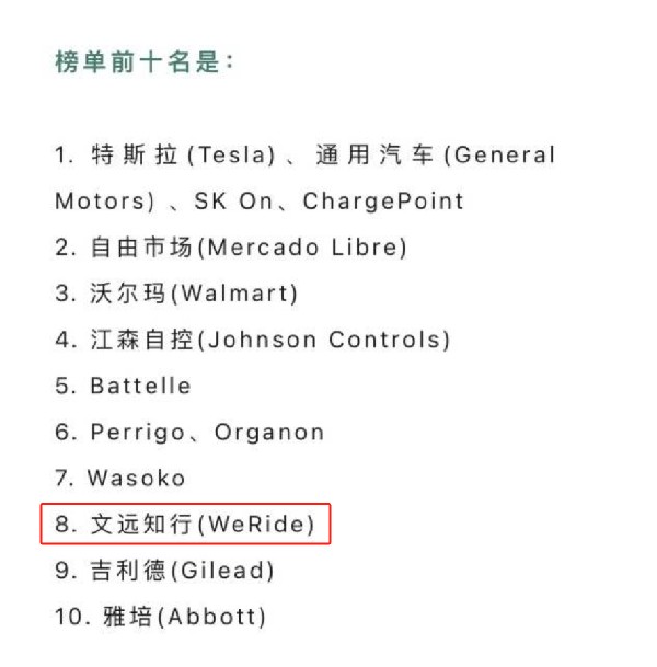 近日,《財(cái)富》雜志公布了2023年改變世界公司榜單(Fortune 2023 Change The World List),羅列了59家對(duì)世界環(huán)境和社會(huì)產(chǎn)生積極影響的公司,文遠(yuǎn)知行位列第八,是唯一一家進(jìn)入前十的中國(guó)公司,以自動(dòng)駕駛技術(shù)給世界帶來(lái)了改變。
