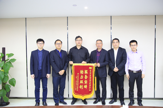 4月17日上午,浙大臺(tái)州研究院玉環(huán)中小企業(yè)平臺(tái)負(fù)責(zé)人董黎光一行到訪金投公司,并贈(zèng)予錦旗。