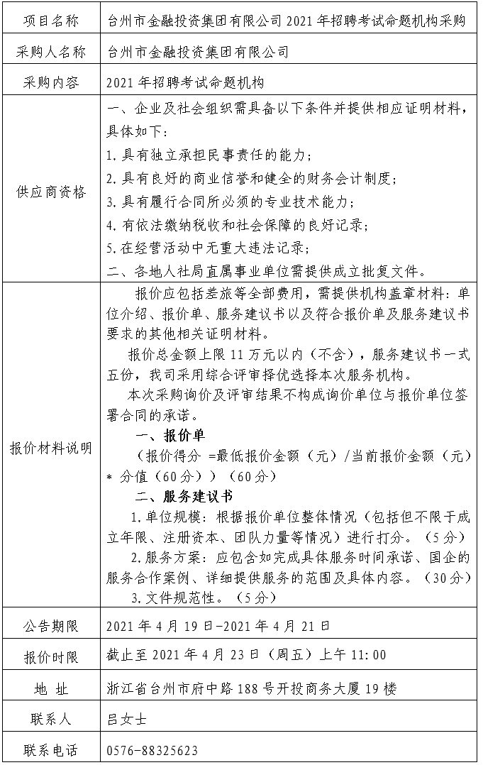 2021年招聘考試命題機構采購公告