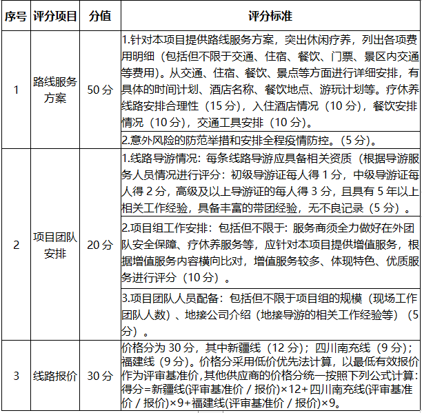 采用綜合比選方式,總得分為100分。根據(jù)評(píng)審結(jié)果,從高到低選擇3家服務(wù)供應(yīng)商作為本次采購服務(wù)的合作機(jī)構(gòu)。