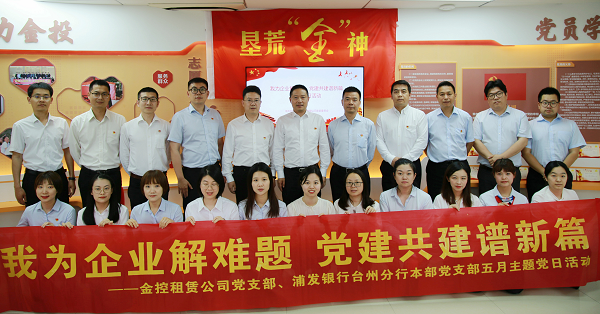 5月13日下午,市金控租賃有限公司黨支部與浦發(fā)銀行臺(tái)州分行本部黨支部開(kāi)展“我為企業(yè)解難題 黨建共建譜新篇”主題黨日活動(dòng)。市金投集團(tuán)黨委書(shū)記管順正,集團(tuán)黨委委員兼市金控租賃公司黨支部書(shū)記龐曉鋒,浦發(fā)銀行臺(tái)州分行黨委委員兼本部黨支部負(fù)責(zé)人韓軍出席活動(dòng)。