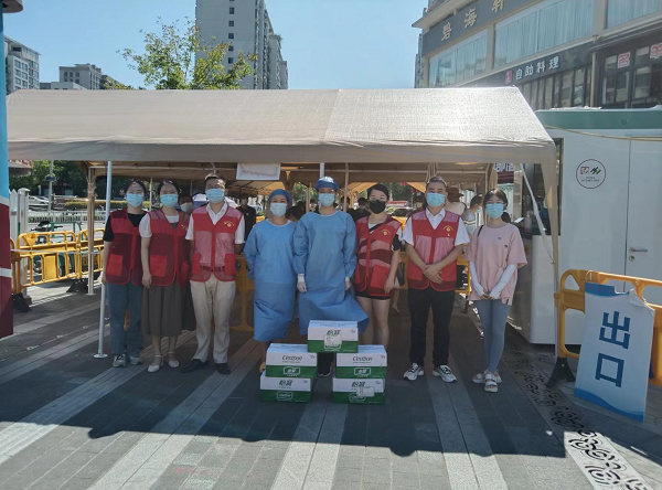 家住廣廈社區(qū)的何女士,因丈夫患有腎衰竭,2019年做了腎移植手術(shù),需要長期服藥和照顧,家里收入甚微,支部黨員們?yōu)檫@個困難家庭購買了生活物資。隨后,大家來到核酸檢測點,天氣持續(xù)高溫給核酸采樣的工作人員們帶來了不小的挑戰(zhàn),支部黨員們?yōu)椤耙痪€戰(zhàn)疫”人員送上礦泉水,向“一線戰(zhàn)疫”人員致敬。